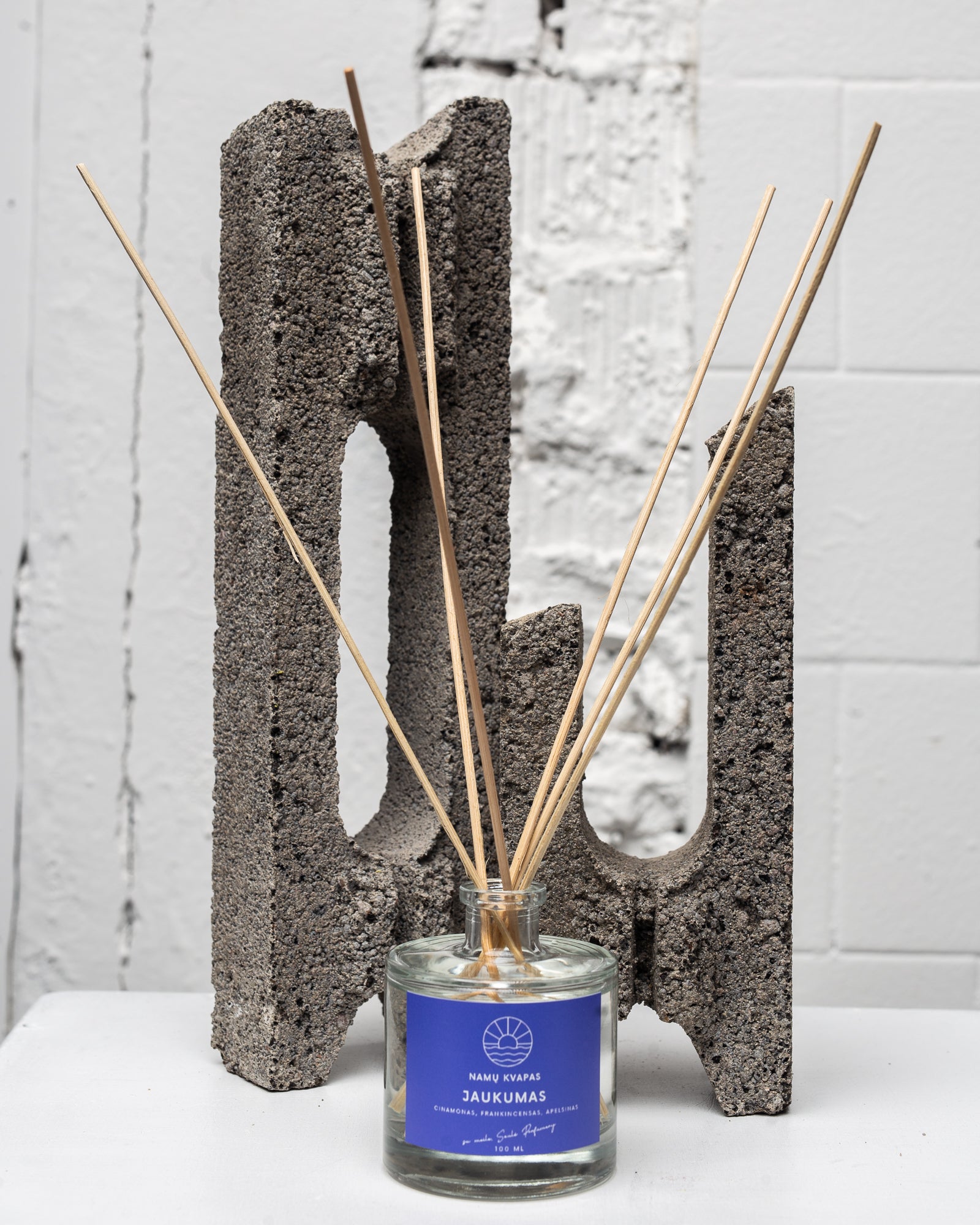 Namų kvapas pateikiamas stikliniame buteliuke su dangteliu. Prie kiekvieno namų kvapo pridedame 6 bambukines lazdeles. Mūsų kurti namų kvapai skleidžia kvapą apie 2-3 mėnesius, priklausomai nuo laikymo sąlygų.