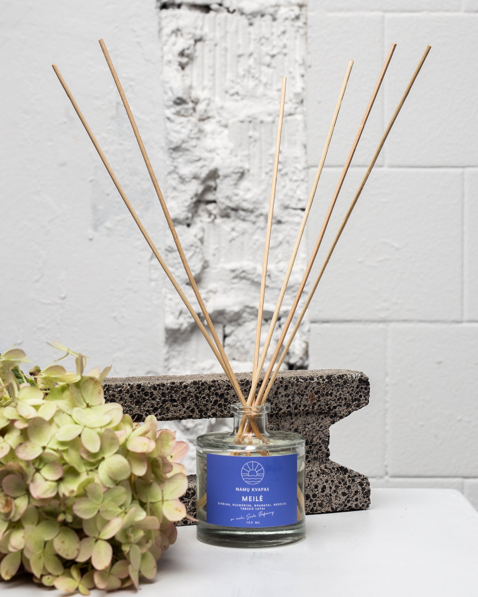 Namų kvapas pateikiamas stikliniame buteliuke su dangteliu. Prie kiekvieno namų kvapo pridedame 6 bambukines lazdeles. Mūsų kurti namų kvapai skleidžia kvapą apie 2-3 mėnesius, priklausomai nuo laikymo sąlygų.